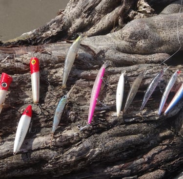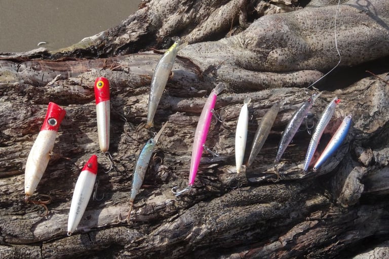 Lures: Shallow-running hardbaits, and surface lures such as poppers and walk-the-dog stickbaits. Light tackle allows finesse presentations in shallow water.