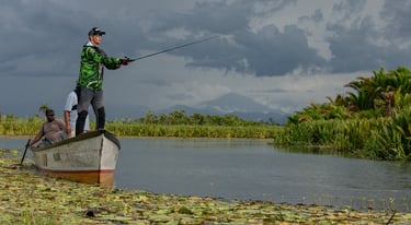 Fishing the Papuan Lakes is a rare privilege. Unlike rivers that rise and stain with seasonal rains, the lakes remain beautifully clear all year round, offering visibility that few Black Bass habitats in the world can match. This clarity not only makes sight-fishing possible but also provides consistency — ensuring that even in flood season, anglers can enjoy world-class conditions.