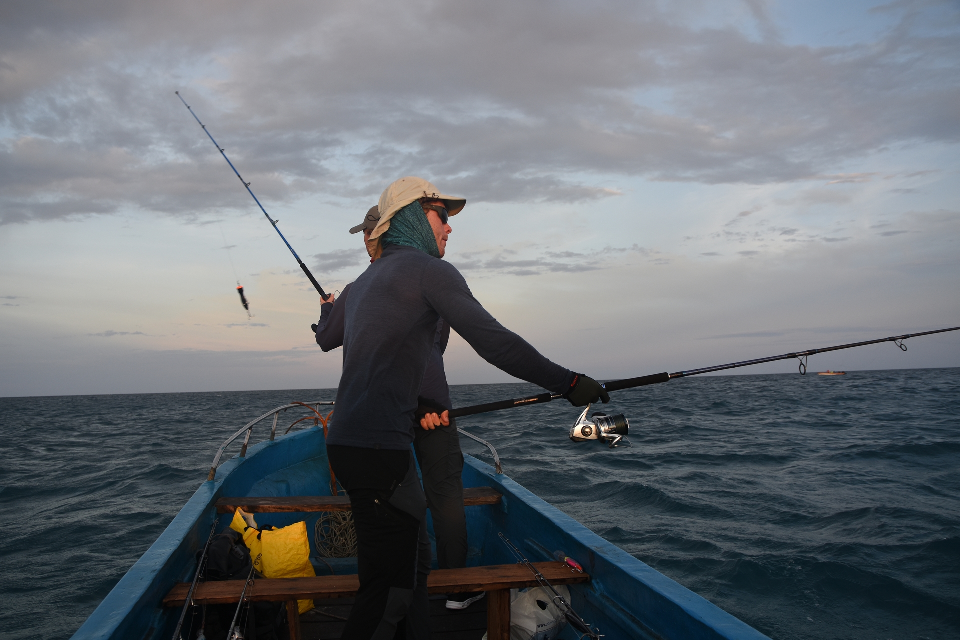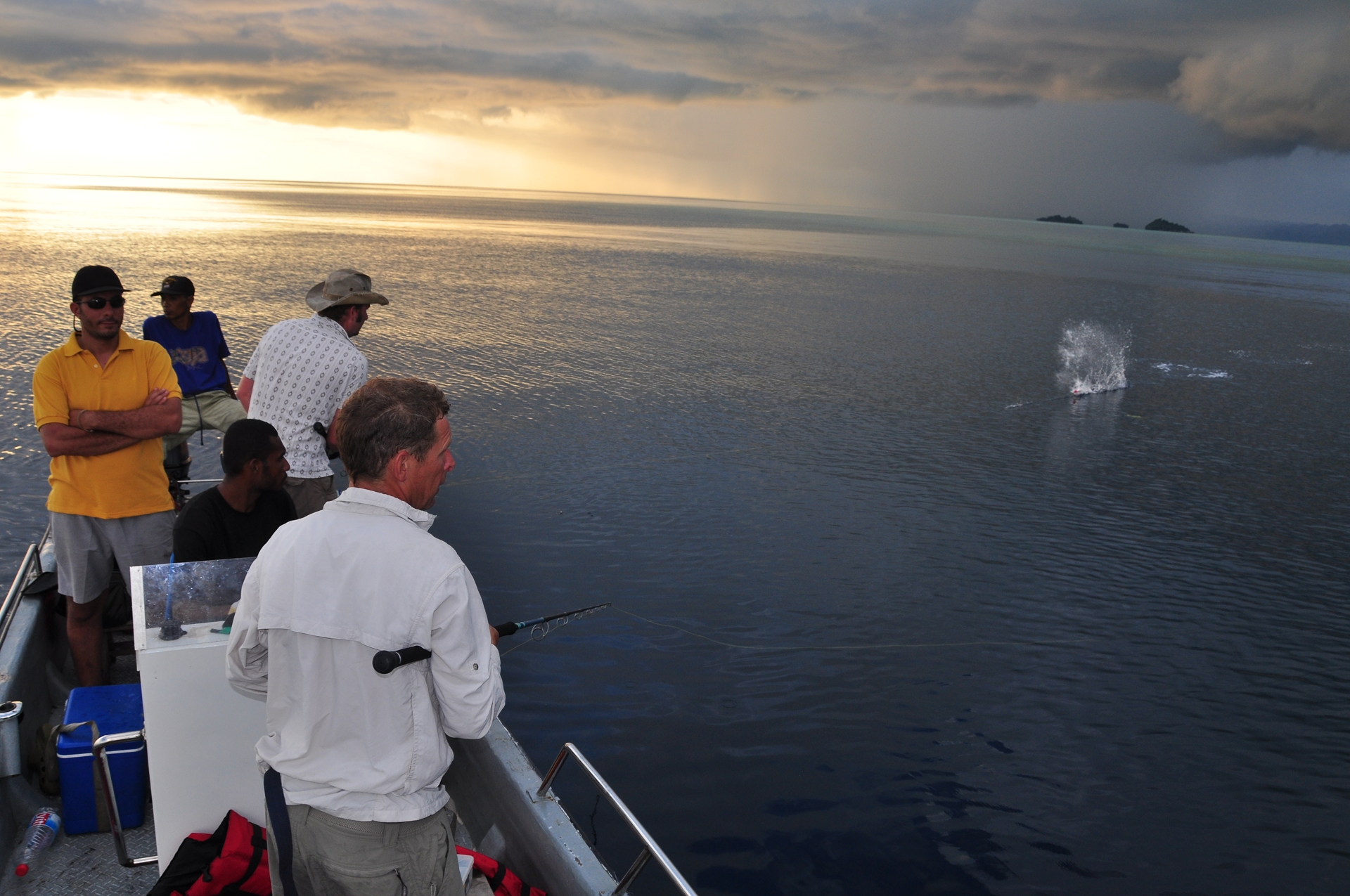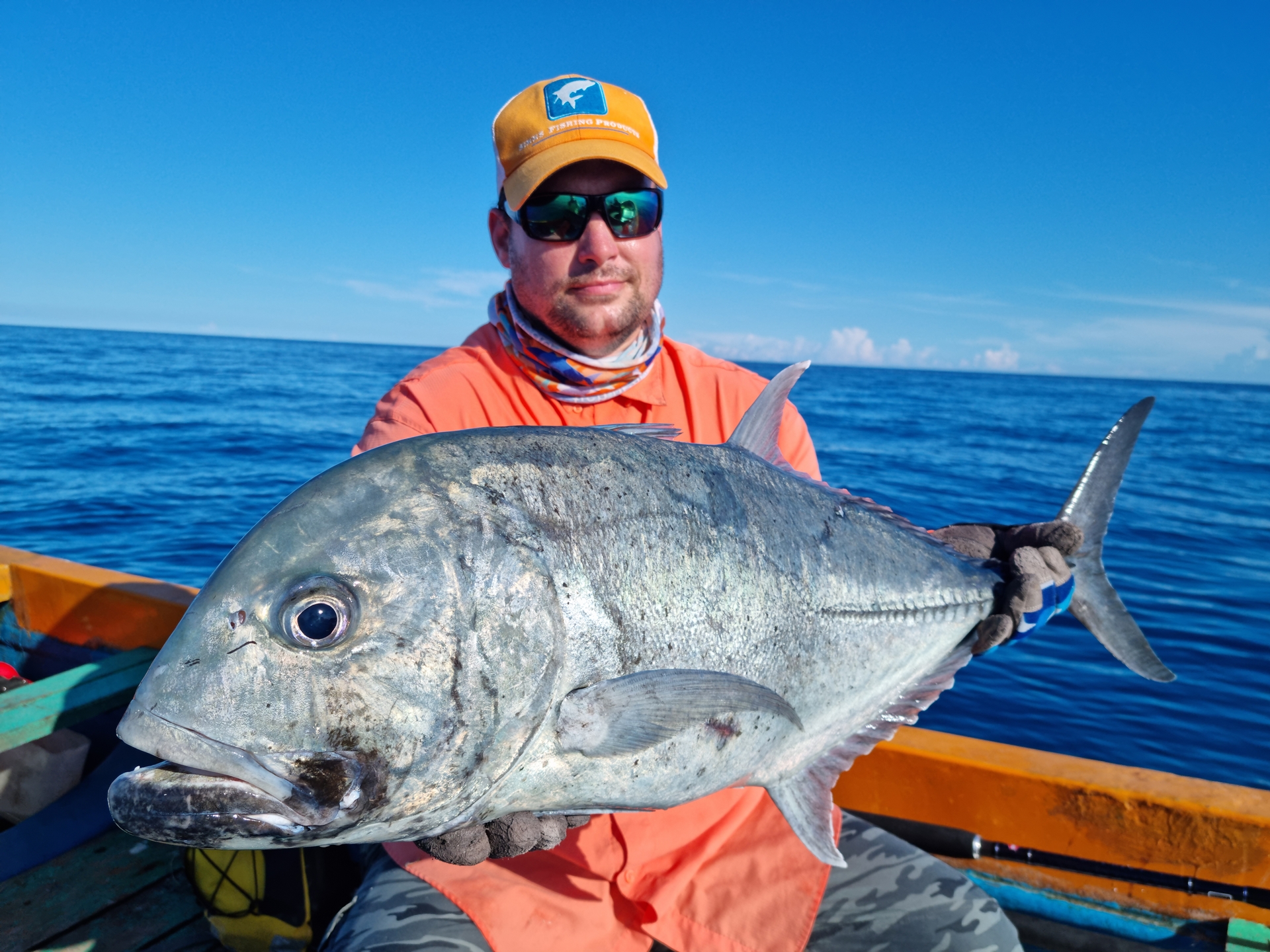 Reef fishing here is all about explosive action and variety. We target powerful GTs (giant trevally) and big Spanish mackerel around reef edges, pressure points, and bait schools. Fast‑worked surface lures and trolled baits bring violent strikes right on the surface. Below, slow jigging over structure produces quality reef fish and surprise trophy bites. It’s an exciting, visual and highly productive way to experience true blue water sportfishing.