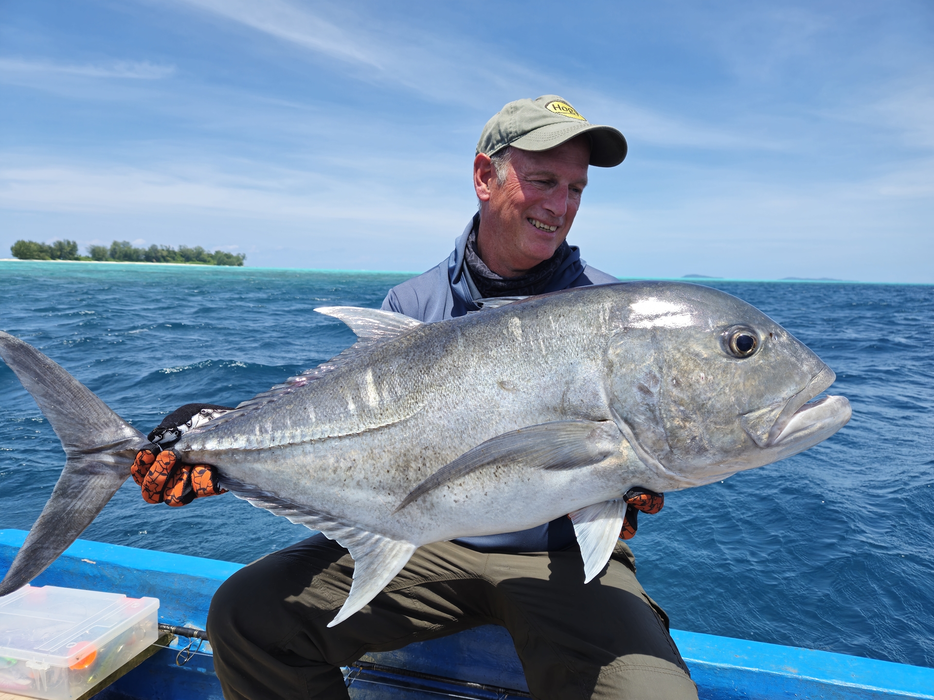 The Auri Archipelago and Roon Island sit in one of Papua’s most untouched regions, a maze of emerald islets, coral reefs, and deep blue channels that feel purpose‑built for serious anglers. Around the reefs and drop-offs, GT, Spanish mackerel, and other powerful predators hunt in clear water, giving pro anglers world‑class casting and slow‑jigging opportunities, while non‑anglers can snorkel pristine coral gardens or relax on white‑sand beaches. Roon’s jungle-clad hills hide exotic birdlife, including the iconic birds of paradise, offering unforgettable early‑morning excursions for families and photographers. Local villages, traditional Papuan culture, and calm lagoons make the area welcoming and comfortable even for those not fishing every day. To crown the experience, encounters with whale sharks at the start or end of the trip add a once‑in‑a‑lifetime highlight, turning a hardcore fishing expedition into an adventure everyone on board will remember.